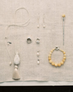 A soft satin cord with tassels — the metal bean makes it distinctive.