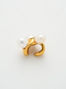 A pearl necklace that can be separated into two bracelets, joined by our signature Tadpole clasp.