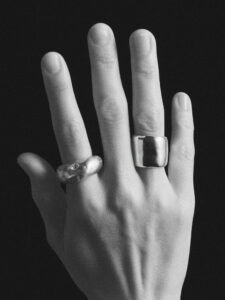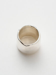Oversized classic band with just the right amount of irregularity on the edges, available in matte or polished finish.
