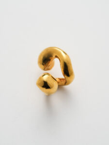 A fluid, sculptural ear cuff that curves along the ear and rises into a rounded point.