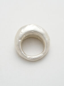 A rounded statement piece that can be worn alone, and despite its generous volume, remains comfortable on the hand.
