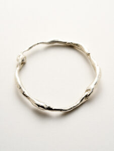 Fluid sculpted bracelet that releases a soft chime with every movement.