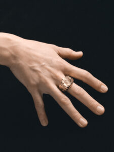 Its band tapers for comfort, making it a standout piece that doesn’t need any other rings while worn.
